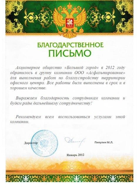 Благодарственные письма